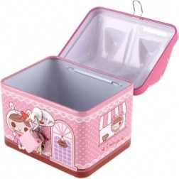 De spaarpot is gemaakt van duurzaam metaal en is daardoor bestand tegen dagelijks gebruik in de kinderkamer. Het compacte formaat van 12 × 11 cm past perfect op een plank of bureau en biedt tegelijk voldoende ruimte voor spaargeld.