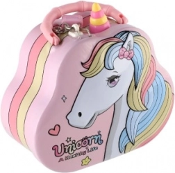 Op zoek naar een schattig en praktisch cadeau voor kinderen? De metalen spaarpot – handtas met eenhoorn is een ideale keuze. Kinderen bewaren hun eerste spaargeld veilig dankzij het afsluitbare deksel, terwijl de bovenste gleuf voor munten dagelijks sparen gemakkelijker maakt.