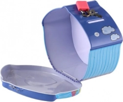 Bovenop vind je een gleuf voor het inwerpen van munten, de inhoud is toegankelijk na het ontgrendelen met het slot en sleuteltje. Een geweldig cadeau voor kinderen dat plezier en leren combineert.