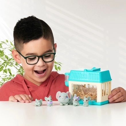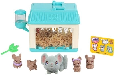 Mini-set Mama Surprise! Zorg voor de mama, voer haar, zet haar in het hok, vul de drinkfles met water en de diertjes zullen geboren worden! Er kunnen 2, 3 of 4 kleine diertjes zijn. Het is een verrassing! De set bevat accessoires om de diertjes te stylen, zoals haarbandjes.