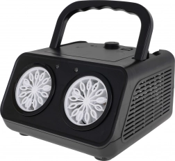 Bellenblazer, bubbelgenerator met twee sproeiers voor kinderen vanaf 3 jaar, jongeren en volwassenen. De krachtige bubbelgenerator fleurt elk feest op. Na het toevoegen van een speciale vloeistof of zeepsop komen er uit twee sproeiers kleurrijke zeepbellen tevoorschijn, die door een stille ventilator in het apparaat worden geblazen. De bellen worden bovendien verlicht door twee LED’s bij de sproeiers. Het apparaat werkt op 4 AA 1,5 V-batterijen; batterijen zijn niet inbegrepen. Voorzien van een handig draaghandvat. Specificaties: - draaghandvat, - reservoirvak voor vloeistof, - bescherming tegen ongecontroleerd morsen, - verlichting bij de bubbeluitlaat, - stille ventilator. |