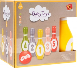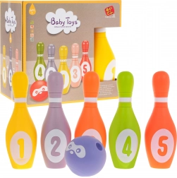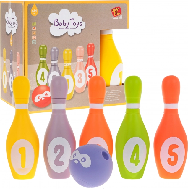 De set foam kegeltjes met bal is een geweldige keuze voor de eerste sportieve spelletjes van kinderen vanaf 6 maanden. Het zachte en lichte materiaal ligt prettig in de hand, glijdt niet en bevat geen scherpe randen of kleine onderdelen. Elk stuk geeft bij indrukken een leuk piepgeluid, wat motiveert om verder te spelen.