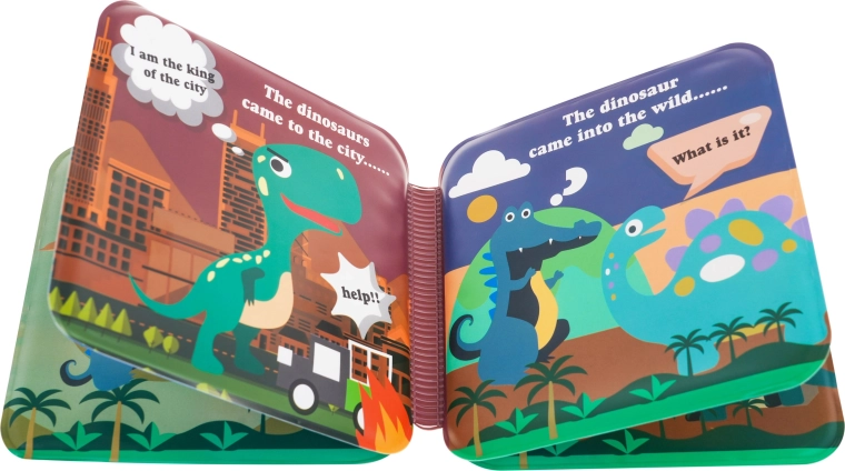 Deze creatieve set combineert dino-vingerpopjes met een zacht boekje met eenvoudige Engelse tekst. Kinderen kunnen de popjes makkelijk op hun vingers zetten en hun eigen theatertje spelen, terwijl het boekje met kleurrijke illustraties nieuwsgierigheid en woordenschat prikkelt. Dankzij de waterbestendige uitvoering geschikt voor spelen in de kamer én in de badkamer.