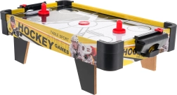 Cymbergaj - airhockeytafel voor kinderen vanaf 3 jaar. AIR HOCKEY is een populair arcadespel voor twee spelers. Er wordt gebruikgemaakt van een speciaal voorbereide tafel. Het tafelblad is voorzien van gaatjes waardoor lucht wordt geblazen. Zo ontstaat een luchtkussen waarover de puck zonder contact met het oppervlak glijdt. De spelers staan aan tegenoverliggende zijden van de tafel. Elke speler gebruikt een speciale kunststof tool, soms “pusher” genoemd, die fungeert als een soort racket. Met dit hulpmiddel slaan de spelers de puck. Het doel van het spel is de puck in het doel van de tegenstander te schieten. De puck beweegt met hoge snelheid. Het spel eindigt doorgaans wanneer een van de spelers een vooraf bepaald aantal punten behaalt (meestal zeven of negen) of wanneer de vastgestelde tijdslimiet is verstreken. Tafel