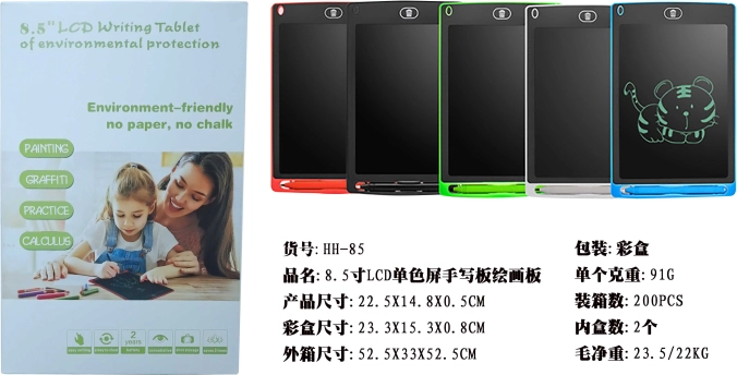 Lichte en ultradunne elektronische schrijftablet van 8,5" – ideaal voor kinderen vanaf 3 jaar en voor volwassenen. Biedt een herbruikbaar schrijf- en tekenoppervlak, direct wissen met één knop, een vergrendeling tegen wissen en een veilig, stralingsvrij LCD-scherm. Inclusief stylus en oogje voor een koord voor gemakkelijk meenemen.