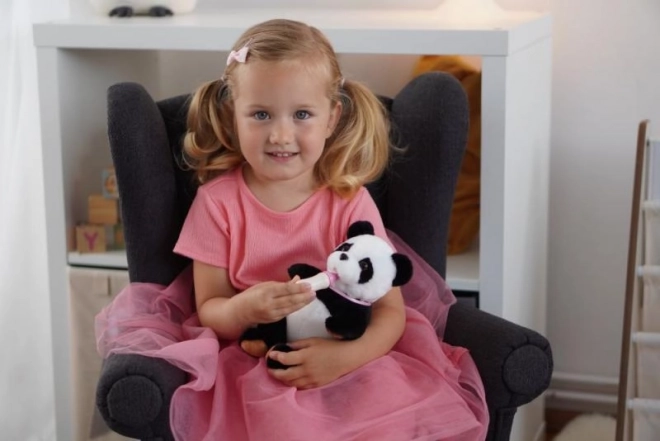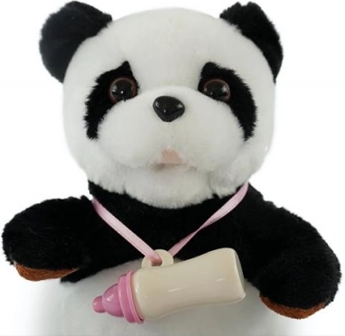 Als je het flesje wegneemt, laat de panda een aandoenlijk geluid horen dat kinderen motiveert tot meer interactie en zorg.