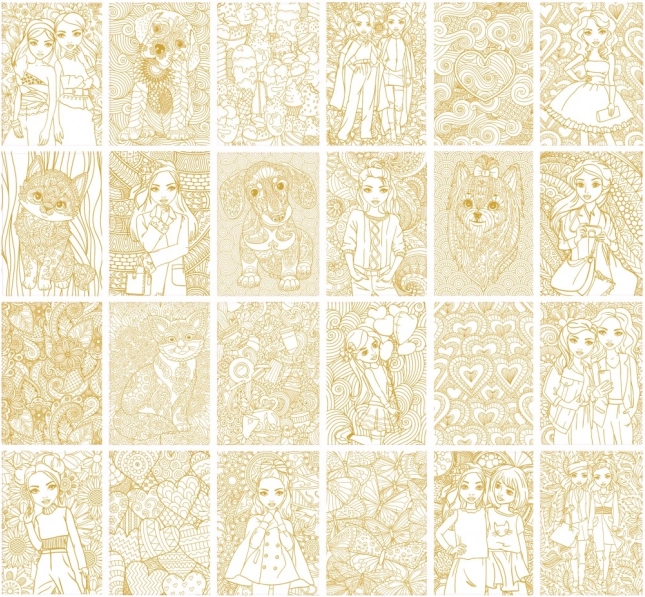 Ontdek het plezier van kleuren met onze kleurboekenset Luxury Besties A4, met 24 schitterende afbeeldingen om te versieren.
