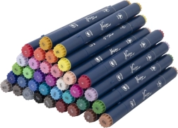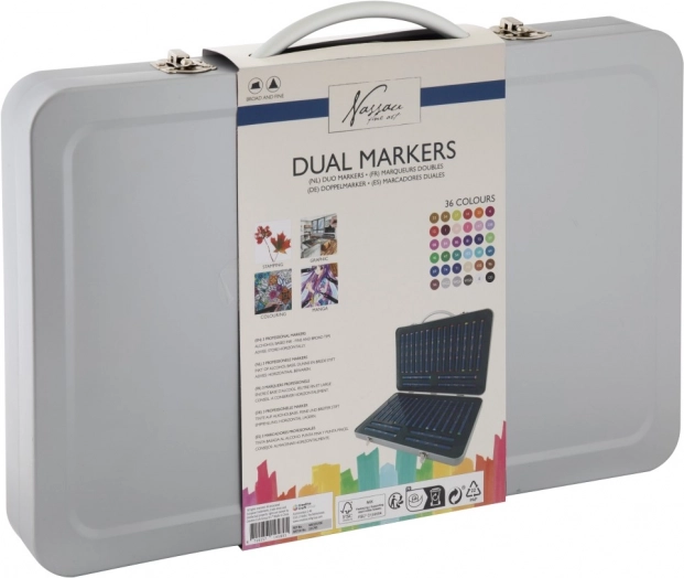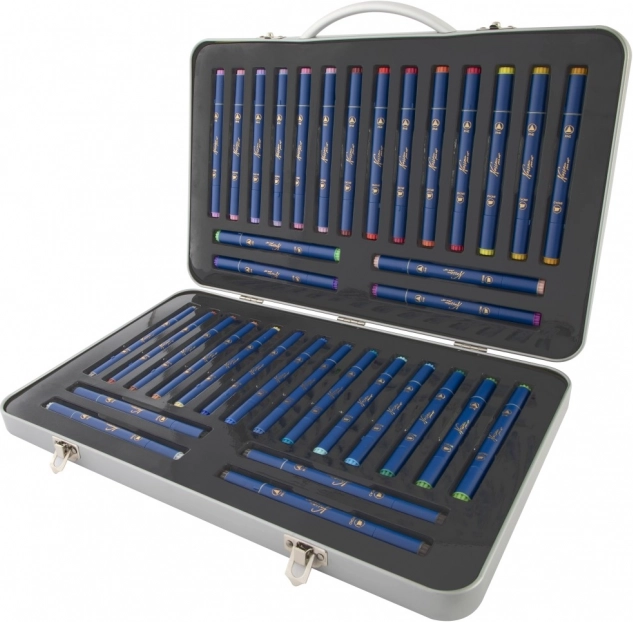 Deze veelzijdige set dubbelzijdige stiften is een uitstekende keuze voor illustratie, schetsen en handlettering. Elke stift biedt twee uiteinden voor verschillende lijndiktes, zodat je eenvoudig wisselt tussen fijne details en grotere vlakken. De metalen koffer beschermt de inhoud, houdt alles geordend en maakt transport eenvoudig.