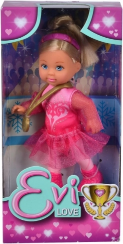 De schattige pop Evi Love in een roze kunstschaatsoutfit tovert een glimlach op het gezicht van alle kleine liefhebbers van kunstschaatsen. Dankzij de roze jurk met tutu-rok, kunstschaatsen en een gouden medaille nodigt ze uit tot creatief spel, het vertellen van verhalen en het prikkelen van de verbeelding.