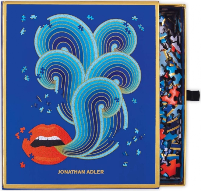 Trakteer jezelf op een uitzonderlijke puzzelervaring met een metallic puzzel die vanuit verschillende hoeken elegant glinstert en de indruk van goud en zilver wekt. Het ontwerp van JONATHAN ADLER geeft het lippenmotief een iconische, moderne uitstraling die in elk interieur opvalt.