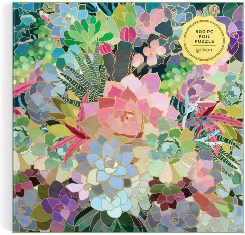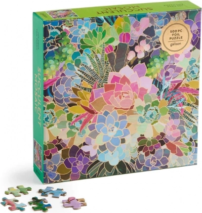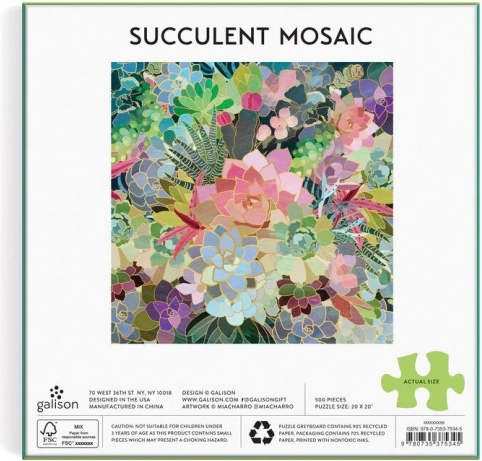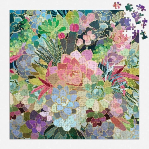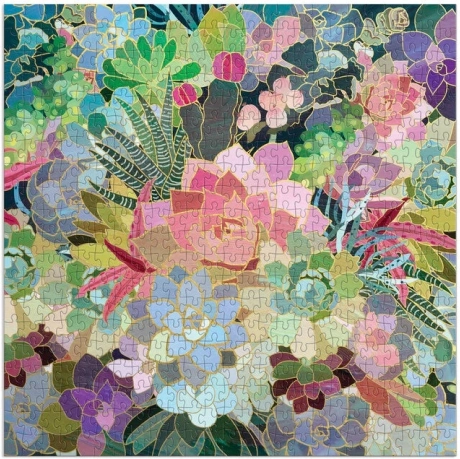Dompel je onder in rustgevend puzzelplezier met een afbeelding van kunstenares Mia Charro. Het motief “Succulent Mosaic” straalt dankzij de gouden folie, die de contouren benadrukt en het beeld een uitzonderlijk accent geeft. Nauwkeurig gestanste stukjes, een gladde achterzijde en een mat oppervlak zorgen voor comfortabel puzzelen zonder schittering en met perfecte leesbaarheid van details.