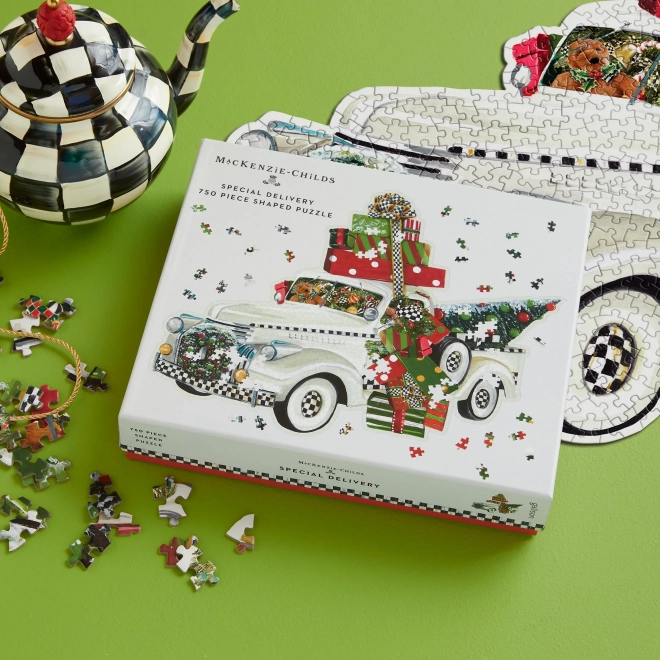 Vormpuzzel Speciale Zending met 750 stukjes. Unieke autovorm, formaat 79 × 62 cm, inclusief voorbeeld. Geweldig als vermaak én decoratie.