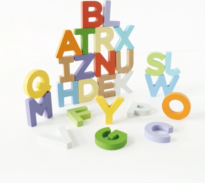 Een gevarieerde set letters in levendige kleuren stimuleert het leren van het alfabet, de woordenschat en de fijne motoriek.