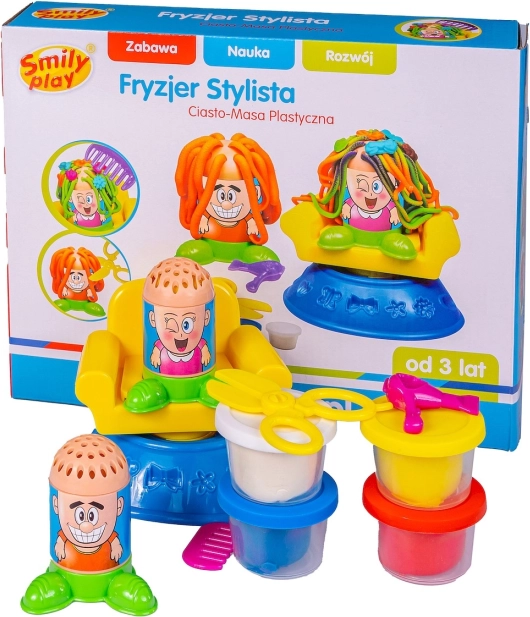 Smily Play klei kappersset Stylista – creatief spel voor kinderen. Ontwikkelt fantasie, fijne motoriek en kleurherkenning. Kleuren zijn gemakkelijk te mengen.