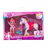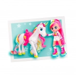 Met BFF Dreamy en haar eenhoorn Rym wordt spelen nog leuker. Rym’s hoorn licht op en maakt geluiden wanneer je op zijn hoofd drukt. Het is een magisch moment en het opnieuw beleven is superleuk, zeker omdat Rym zes verschillende geluiden kan maken. Dreamy en Rym kunnen in leuke poses gezet worden. Dreamy heeft lang, kleurrijk, glanzend haar en glazen ogen en haar outfit doet denken aan een kunstschaatsster. De set bevat ook wieltjes zodat Dreamy kan doen alsof ze rolschaatst, en een zadel zodat Dreamy ook op Rym’s rug kan rijden. Beleef unieke avonturen met Dreamy en Rym!