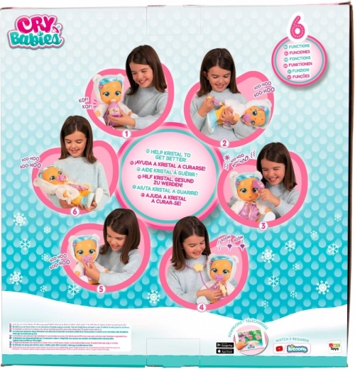 De pop Cry Babies Kristal is nu verkrijgbaar in een elegante outfit die nieuwe speelmogelijkheden garandeert. Ze reageert op zorg en liefde, waardoor ze een echte baby nabootst.
