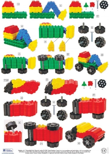 Met Morphun-sets ervaren kinderen leuke en eenvoudige constructies van eerste modellen. Deze beginnersset bevat verschillende stukken die gemakkelijk kunnen worden samengevoegd volgens de meegeleverde gekleurde instructiegids op kwaliteit krijtpapier.