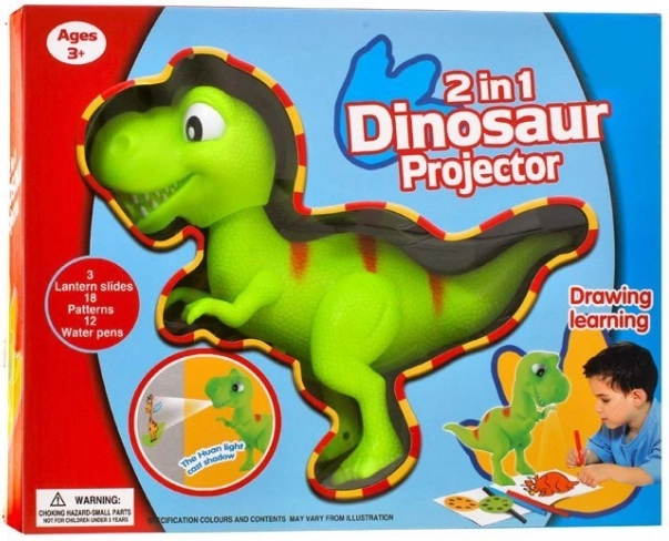 De Dinosaurus T-rex projector biedt drie sets patronen om te projecteren op een bord of elk vlak oppervlak. Dankzij de verstelbare kantelhoek kan hij worden gebruikt om op papier te tekenen of om afbeeldingen op de muur te projecteren. De dinosaurus is zorgvuldig vervaardigd, wat langdurig speelplezier garandeert.