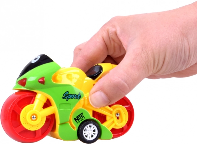 Deze vrolijke, kleurrijke motor is ideaal voor kleine kinderhanden. Door zijn compacte formaat biedt hij eenvoudig gebruiksgemak, waardoor kinderen het speelgoed gemakkelijk mee kunnen nemen op wandelingen of naar de kleuterschool.