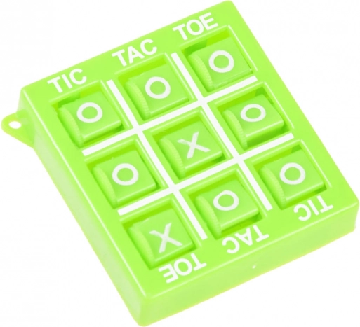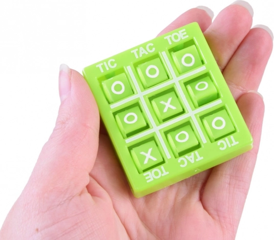 Het spel bevat beweegbare blokjes met getekende kruisjes en rondjes. Schuif eenvoudig naar het juiste symbool en je kunt beginnen met spelen. Het spel is volledig van kunststof gemaakt en past dankzij de afmetingen (5 x 4,5 x 1 cm) gemakkelijk in je zak. De kleur van het spel wordt willekeurig gekozen.