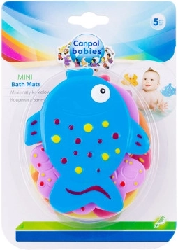 De antislip mini badmatjes van Canpol babies zijn een praktische badaccessoire. Ze zijn eenvoudig te bevestigen met zuignappen. In de verpakking: 5 kleurrijke diertjes. Ze voorkomen toevallig uitglijden of vallen tijdens het baden. Kleurrijke patronen en motieven moedigen kinderen aan om te baden. De zuignappen voorkomen effectief dat de matjes verschuiven en dankzij de zuignappen kunnen de diertjes ook eenvoudig aan de wand van het bad of de douche bevestigd worden. De diertjes zijn gemaakt van hoogwaardig rubber. Gebruiksaanwijzing: Houd schoon. Was de matjes voor het eerste gebruik en na elk volgend gebruik in warm water met een mild reinigingsmiddel, spoel grondig af en laat drogen. Niet uitkoken! Waarschuwing! Belangrijk voor de veiligheid en gezondheid van uw kind! Controleer het product voor elk gebruik. Gebruik het product niet meer bij de eerste tekenen van slijtage of beschadiging – vervang het door een nieuw exemplaar. Waarschuwing! Dit product is geen speelgoed. Buiten het bereik van kinderen houden. Laat een kind tijdens het baden niet zonder toezicht van een volwassene. De antislipmatjes voldoen aan: Richtlijn 2001/95/EG van het Europees Parlement en de Raad inzake algemene productveiligheid.
