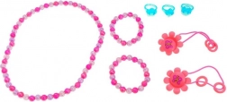 - Föhn op batterijen, kam, kralenketting, 2× haarelastiekje, 3× ring, 2× imitatie-lipstick, 3× imitatie-nagellak