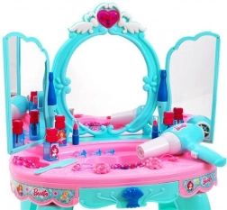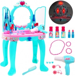 De interactieve kaptafel zal kleine liefhebbers van mode en schoonheid verrassen. Gemaakt van solide en veilige materialen in zachte pastelkleuren roze en turquoise, waardoor hij vriendelijk en elegant oogt. Met een druk op het hartje boven de spiegel worden zachte LED-lichtjes en melodieën geactiveerd die een magische sfeer creëren.