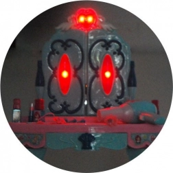 Druk op het hartje boven de spiegel en geniet van zachte verlichting en een melodie. De decoratieve elementen op de deurtjes lichten ook op en versterken de betovering van het spel.