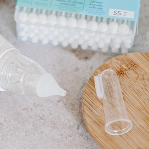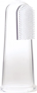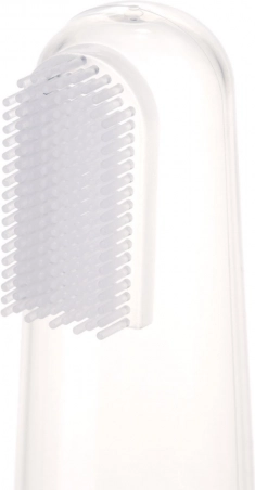 De transparante siliconen vingerborstel is ontworpen om ouders vanaf de geboorte veilig en gecontroleerd de mond van hun kind te laten reinigen. De zachte nopjes verwijderen effectief onzuiverheden van de eerste tandjes en masseren tegelijkertijd zachtjes het tandvlees, wat ook kan helpen bij doorkomende tandjes.