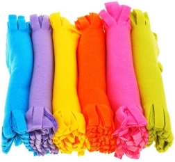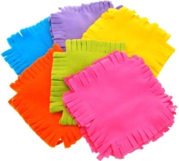 De DIY-set “Doe-het-zelf” voor het maken van een patchwork fleecedeken is ideaal voor alle kleine makers. Elk vierkant van zachte fleece is ongeveer 23 × 23 cm en door de franjes aan elkaar te knopen ontstaat een aangename, warme en speels kleurrijke deken.