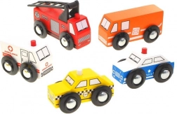 De set bevat een ambulance, taxi, politiewagen en verschillende figuurtjes om het spel te verrijken.