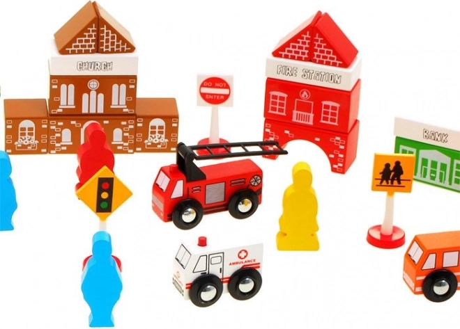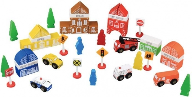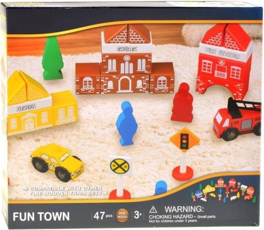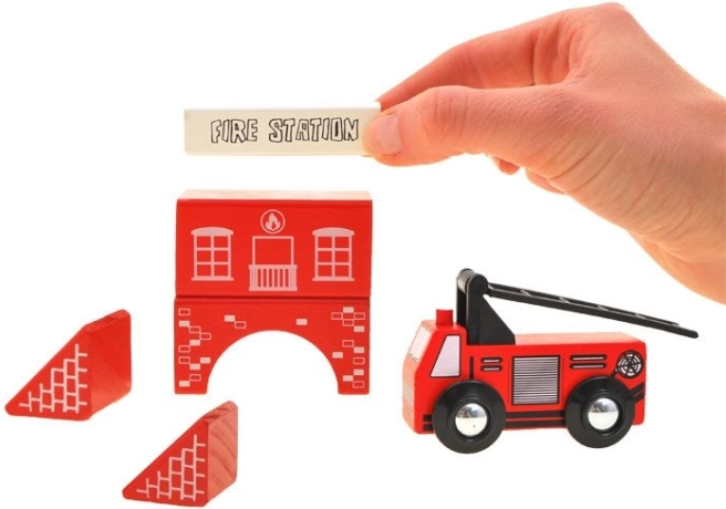 Houten bouwdozen Stadje Brandweerkazerne zijn zorgvuldig gemaakt met aandacht voor detail. Gekleurde stukken trekken de aandacht en moedigen aan tot spelen. Deze houten blokken zijn stevig en zullen lange tijd dienstdoen. Gemaakt van natuurlijke materialen, zijn ze volledig milieuvriendelijk.