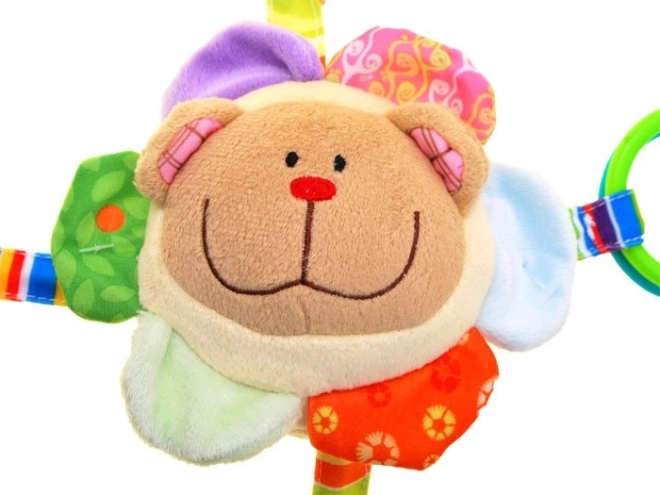 Dit hangspeeltje is ontworpen voor nieuwsgierige baby’s. In het midden bevindt zich een vriendelijk beertje omringd door kleurrijke bloemblaadjes, elk met een eigen verrassing. De blaadjes zijn gemaakt van verschillende materialen: knisperend, zacht, glad – zodat je kind kan ontdekken en de tast- en gehoorzin kan ontwikkelen.