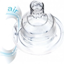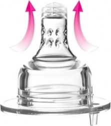 De speen is gemaakt van lagen siliconen met verschillende diktes voor een dynamische aanpassing van de vorm tijdens het zuigen.