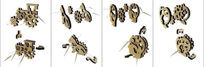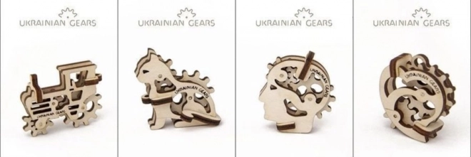 Ugears 3D mechanische houten puzzel – 4 mechanische hangers Karaktersymbolen
