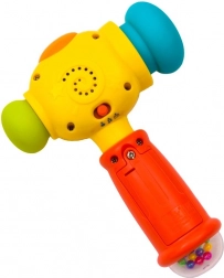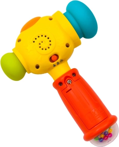 De vrolijke interactieve hamer valt bij kinderen in de smaak dankzij het kleurrijke design, het grappige gezicht en de combinatie van licht- en geluidseffecten. Bij het indrukken van de bovenste knop speelt hij 5 leuke melodieën af en tijdens het spel gaat het lichtje op de kop branden. Elke tik activeert bovendien effecten die de natuurlijke nieuwsgierigheid stimuleren en aanzetten tot verder ontdekken.