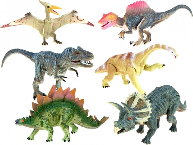 De set bevat zes verschillende soorten dinosaurussen, zoals T-Rex, Stegosaurus en meer, wat een breed scala aan spel- en leermogelijkheden biedt.