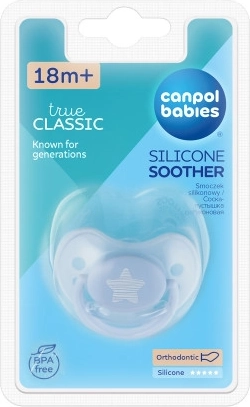 De fopspeen uit de PASTELS-collectie heeft een anatomisch gevormde speen en is gemaakt van transparant siliconen dat volledig smaak- en reukloos is. Bovendien is hij versierd met schattige motieven in pastelkleuren. De fopspeen is BPA-vrij.Voordelen van Canpol babies fopspenen: ze ontluchten goed; u kunt dit eenvoudig controleren door de speen in te drukken (onderschat deze eigenschap niet; slechte ontluchting van de fopspeen kan leiden tot vervorming van het gehemelte en de beet van het kind) ventilatieopeningen in het schild zorgen voor vrije luchtcirculatie, voeren speeksel af en voorkomen zo huidirritatie rond de mond de veiligheidsring zit stevig vast, maakt het kind een comfortabele grip mogelijk en vergemakkelijkt voor ouders het bevestigen van een clip of ketting aan de fopspeen fopspenen zijn verkrijgbaar in aantrekkelijke, vrolijke kleuren en fantasierijke designsGebruiksaanwijzing: Steriliseer de fopspeen vóór het eerste gebruik om hygiënische redenen in kokend water gedurende ongeveer 5 minuten. Knijp na het afkoelen het resterende water uit de fopspeen. Was de fopspeen vóór elk gebruik grondig in warm water. Gebruik geen antibacteriële of chemische reinigingsmiddelen. Overmatig gebruik van reinigingsmiddelen kan schade aan plastic onderdelen veroorzaken. Dompel de fopspeen nooit onder in zoete substanties of medicijnen – dit stelt het kind bloot aan het risico op glazuurdefecten. Gebruik de fopspeen maximaal 1–2 maanden en vervang hem daarna om hygiënische en veiligheidsredenen. Als de fopspeen in de mond van het kind verdwijnt, RAAK NIET IN PANIEK – de fopspeen is zo ontworpen dat het kind hem niet kan inslikken en u hem in zulke gevallen veilig uit de mond kunt halen. Haal de fopspeen zo voorzichtig mogelijk uit de mond. Bewaar de fopspeen in een schoon, droog en afgesloten etui. We raden af fopspenen te gebruiken bij kinderen ouder dan 3 jaar.Belangrijk! Voor de veiligheid en gezondheid van uw kind! Controleer de staat van de fopspeen vóór elk gebruik. Test de kwaliteit van de speen door hem in alle richtingen grondig uit te rekken. Bij de eerste tekenen van beschadiging de fopspeen onmiddellijk weggooien en niet meer gebruiken. Gebruik alleen clips en kettingen die voldoen aan de norm EN 12586. Bevestig de fopspeen nooit aan koordjes, veters of linten van kleding. Verstikkingsgevaar. Laat de fopspeen niet in direct zonlicht, in de buurt van een warmtebron of langer dan aanbevolen in desinfectiemiddelen liggen – dit kan de speen verzwakken. Bewaar de afgenomen kap buiten het bereik van kinderen – dit voorkomt mogelijk verstikkingsgevaar.De siliconen fopspeen voldoet aan de eisen van: Richtlijn 2001/95/EG van het Europees Parlement en de Raad betreffende algemene productveiligheid EN 1400-1 Producten voor de verzorging van kinderen – Fopspenen voor zuigelingen en jonge kinderen – Deel 1: Algemene veiligheidseisen en productinformatie EN 1400-2 Producten voor de verzorging van kinderen – Fopspenen voor zuigelingen en jonge kinderen – Deel 2: Mechanische eisen en beproevingen EN 1400-3 Producten voor de verzorging van kinderen – Fopspenen voor zuigelingen en jonge kinderen – Deel 3: Chemische eisen en beproevingen