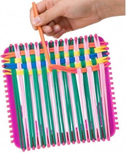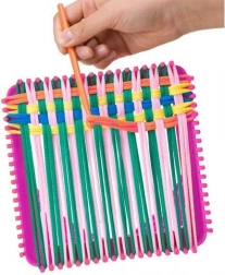 Met deze creatieve weefset veranderen kinderen hun vrije tijd in zinvol plezier. Dankzij het stevige kunststof frame en de kleurrijke, elastische textiellusjes maken ze eenvoudig originele tasjes, portemonnees, etuis of kleurrijke onderzetters voor mokken. Eenvoudige werkwijze en een duidelijke, geïllustreerde handleiding stimuleren zelfstandig maken.