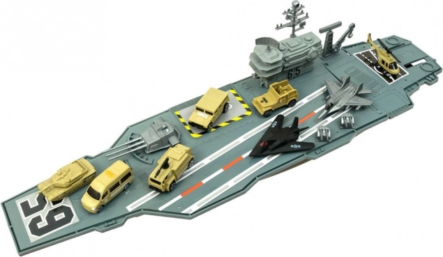 Het vliegdekschip, aangevuld met straaljagers, een helikopter, een tank, extra voertuigen en soldatenfiguren, zorgt voor talloze speelscenario’s en uren speelplezier.
