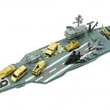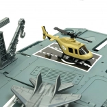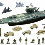 Vliegdekschip, 3× straaljager, 1× helikopter, 1× tank, 4× militair voertuig, soldatenfiguren