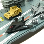 Groot militair vliegdekschip – speelset met vliegtuigen en voertuigen