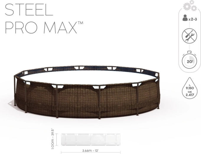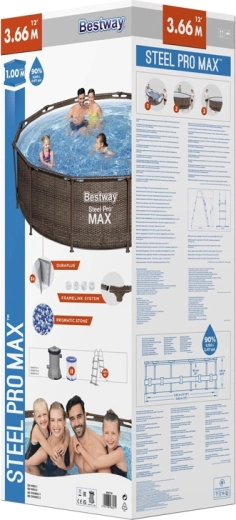 De Bestway Pro MAX™ rattan framezwembad met afmetingen 366 x 100 cm en een inhoud van 9.150 l zorgt voor heerlijke verkoeling op een warme dag. Het privé tuinzwembad is ruim genoeg zodat kinderen er samen met hun ouders gemakkelijk van kunnen genieten. Het bijzondere rattanlook design past perfect in elke tuin.