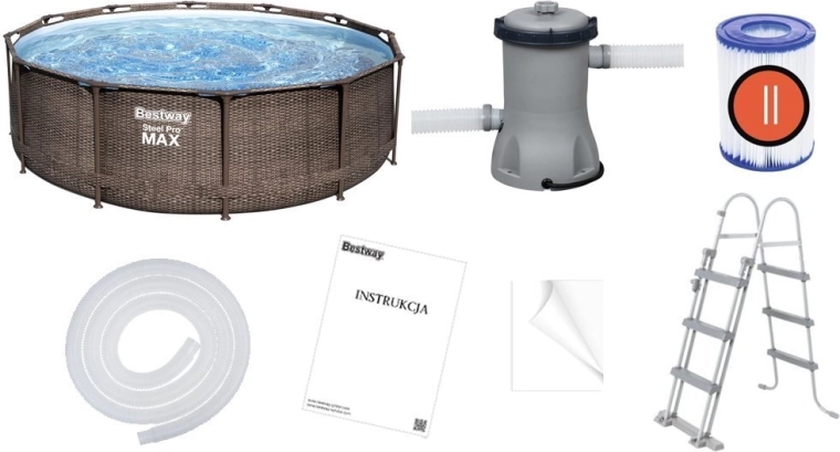 Dit rattan framezwembad 366x100 is nieuw, origineel verpakt en gedekt door fabrieksgarantie. In onze winkel is ook zwembadaccessoires verkrijgbaar, wacht niet en shop nu!