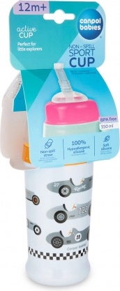 Canpol babies Sportfles met siliconen lekvrije rietje AUTO’S 350 ml lichtblauw
