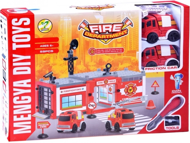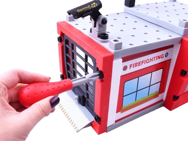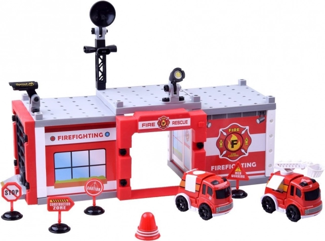 Complete set met onderdelen voor het gebouw, de garage en accessoires. Kinderen bouwen eenvoudig een basis voor alle brandweeracties en genieten van realistisch rollenspel.