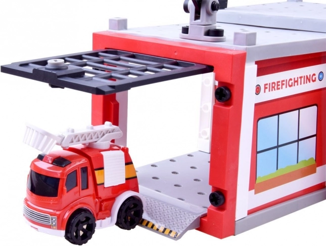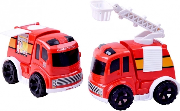 Bevat twee rode wagentjes met gedetailleerde afwerking, waarvan één met uitschuifbare ladder. Ideaal voor reddingsscenario’s en rijden rond de kazerne.