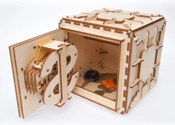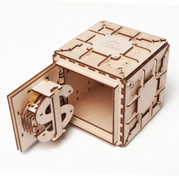 Ontdek de magie van mechanica met het houten kluismodel van UGEARS. Een volledig functionele 3D-puzzel met een cijfercombinatieslot, 179 onderdelen zonder lijm en een soepel mechanisme – perfect voor liefhebbers van techniek en design. Stel je eigen driecijferige code in en berg kleine kostbaarheden veilig op in een elegante houten behuizing.