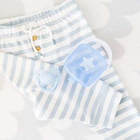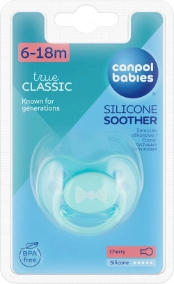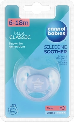 De PASTELS siliconen fopspeen is gemaakt van transparant siliconen dat volledig smaak- en reukloos is. De fopspeen is BPA-vrij. Verpakking: 1 stuk. Voordelen van Canpol babies fopspenen: ze ontluchten goed; u kunt dit eenvoudig controleren door het speendeel in te drukken (onderschat deze eigenschap niet; slechte ontluchting van de fopspeen kan leiden tot vervorming van gehemelte en beet van het kind). Ventilatieopeningen in het schild van de fopspeen zorgen voor vrije luchtcirculatie, voeren speeksel af en voorkomen zo irritatie van de huid rond de mond. De veiligheidsring aan de fopspeen zit stevig vast, vergemakkelijkt een comfortabele greep voor het kind en voor ouders het bevestigen van een clip of ketting aan de fopspeen. Fopspenen zijn verkrijgbaar in aantrekkelijke pastelkleuren en creatieve designs. Vul de fopspeen aan met een fopspeenhouder in hetzelfde design. Gebruiksaanwijzing: Steriliseer de fopspeen vóór eerste gebruik om hygiënische redenen ongeveer 5 minuten in kokend water. Knijp na afkoeling het resterende water uit de speen. Was de fopspeen vóór elk gebruik grondig in warm water. Gebruik geen antibacteriële of chemische reinigingsmiddelen. Overmatig gebruik van reinigingsmiddelen kan plastic onderdelen beschadigen. Doop de fopspeen nooit in zoete substanties of medicijnen – u stelt uw kind bloot aan het risico op glazuurbeschadiging. Gebruik een fopspeen maximaal 1–2 maanden en vervang deze daarna om hygiënische en veiligheidsredenen. Als de fopspeen in de mond van het kind verdwijnt, RAAK NIET IN PANIEK – de fopspeen is zo ontworpen dat het kind hem niet kan inslikken en u kunt hem in zulke gevallen veilig uit de mond verwijderen. Verwijder de fopspeen zo voorzichtig mogelijk. Bewaar de fopspeen in een schoon, droog en gesloten etui. We raden aan geen fopspenen te gebruiken bij kinderen ouder dan 3 jaar. Belangrijk! Voor de veiligheid en gezondheid van uw kind! Controleer de staat van de fopspeen vóór elke toediening aan het kind. Test de kwaliteit van het speendeel door het grondig in alle richtingen uit te rekken. Bij de eerste tekenen van beschadiging de fopspeen direct weggooien en niet verder gebruiken. Gebruik alleen clips en kettingen voor fopspenen die voldoen aan de eisen van norm EN12586. Bevestig de fopspeen nooit aan koordjes, veters of linten van kleding. Het kind kan stikken. Laat de fopspeen niet in direct zonlicht, in de buurt van een warmtebron of in desinfectiemiddelen langer dan aanbevolen – dit kan het speendeel verzwakken. Bewaar de verwijderde kap buiten bereik van kinderen – om verstikkingsgevaar te voorkomen. De fopspeen voldoet aan de volgende eisen: Richtlijn 2001/95/EG van het Europees Parlement en de Raad betreffende algemene productveiligheid. EN 1400 – 1 Producten voor de verzorging van kinderen – Fopspenen voor zuigelingen en jonge kinderen – Deel 1: Algemene veiligheidseisen en productinformatie. EN 1400 – 2 Producten voor de verzorging van kinderen – Fopspenen voor zuigelingen en jonge kinderen – Deel 2: Mechanische eisen en beproevingen. EN 1400 – 3 Producten voor de verzorging van kinderen – Fopspenen voor zuigelingen en jonge kinderen – Deel 3: Chemische eisen en beproevingen.
