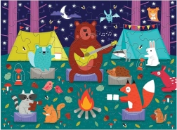 Duik in de wereld van bosvrienden rond het kampvuur. Deze geurende puzzel brengt niet alleen plezier bij het leggen, maar ook een speels zintuiglijk element – drie speciale stukjes ruiken naar marshmallow, cacao en kaneel. Dankzij de diepe kleuren, de matte afwerking en de gladde achterzijde liggen de stukjes prettig in de hand en passen ze perfect in elkaar.